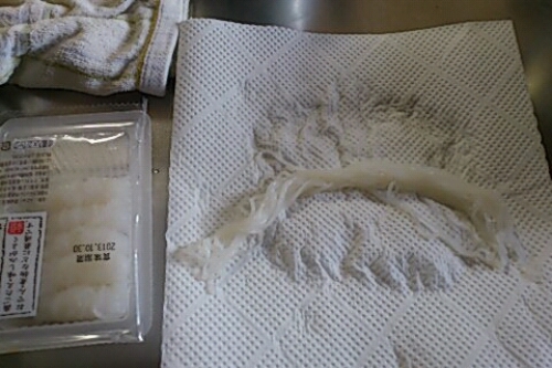 ワームは漬け込んでも液を吸わないので違うものも作ってみることにする。あこないだからやってる ガルプ液の漬け込みですけどね。以前も試したことのあるこんにゃくです。釣れない事もないけど 驚くほどつれなかった・・・・・こいつをガルプにしてみようと思います。ちまたでガルコンといわれるやつですね(^o^)早速 糸こんにゃくをキッチンペーパーで水抜き。このまま置いときます。・・・・・・・・・・ここでショックなことが!なんだかわからない嫁さんに捨てられちゃった(T.T)皆さんは 一筆書いといたほうが良いです。で再度やり直し・・・・で完成?いい入れ物が無かったんで100均ワームを一つ開封して 入れ物にしました。これで爆釣となればいいんですけどね(^^;)とにかくコストパフォーマンスは抜群です。にほんブログ村 家族ブログにほんブログ村 家庭・家族にほんブログ村 ハンドメイドブログにほんブログ村 木工にほんブログ村 車 修理・整備にほんブログ村 自作PCにほんブログ村