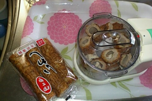 さて今夜こそ 大量ゲットを狙うぞ!で夜勤の前に 撒餌を買おうかと思いましたが私のように 短時間しか釣らない人にはブロックで買うのは多すぎますしチューブもいいのですが コスト的に高い。何かないかと考えておりましたが・・・・どうやらイワシの撒餌が昔からあり 集魚力が強いみたい。でスーパーをはしごしましたが イワシのミンチが置いてないのです(^^;)あっても高そう。でイワシの竹輪を買ってきました。こいつを フードプロセッサーでミンチにしたらどうかという話です。ついでに 出しの元のお中元が大量にありアゴダシなんで使わないままだったんで集魚効果に期待し混ぜることに。竹輪4本でほぼ満タンです。これは量的にはいい感じ。とりあえず2袋ぶん、 6本ミンチに。いい感じの量になりました。ジップしてるんでこぼれないし臭わない。使うときははしを切ってクリームのように搾れば手も汚れません\(^o^)/ちなみに1袋88円でしたんで今回は176円でできました。付け餌は 冷凍してずっと使ってるんで問題なし!あとは釣れるかだけが問題です。明日をお楽しみに\(^o^)/にほんブログ村 家族ブログにほんブログ村 家庭・家族にほんブログ村 ハンドメイドブログにほんブログ村 木工にほんブログ村 車 修理・整備にほんブログ村 自作PCにほんブログ村