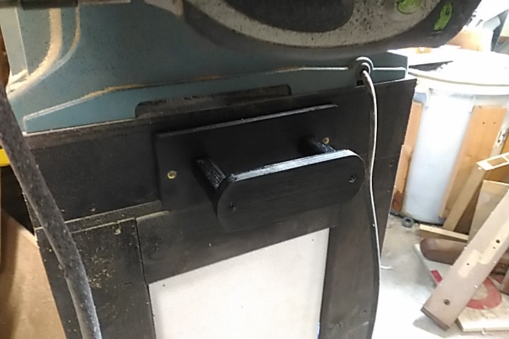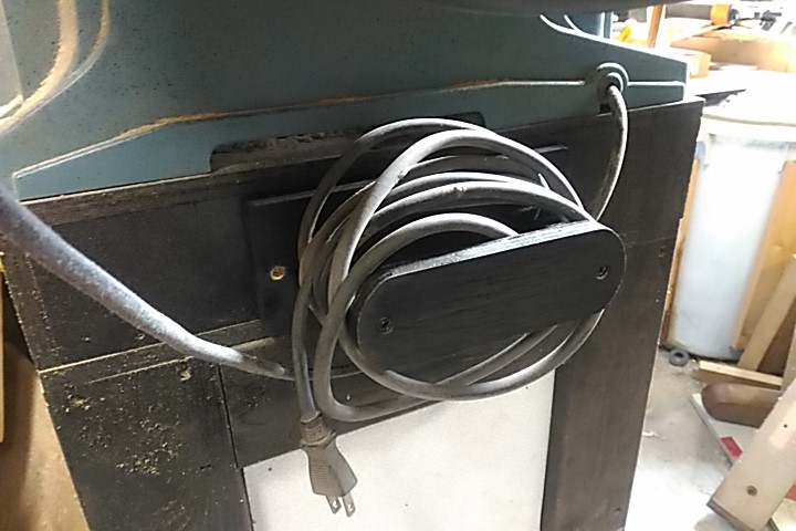 テーブルソーの電源コードを S字フックで掛けて収納してましたが