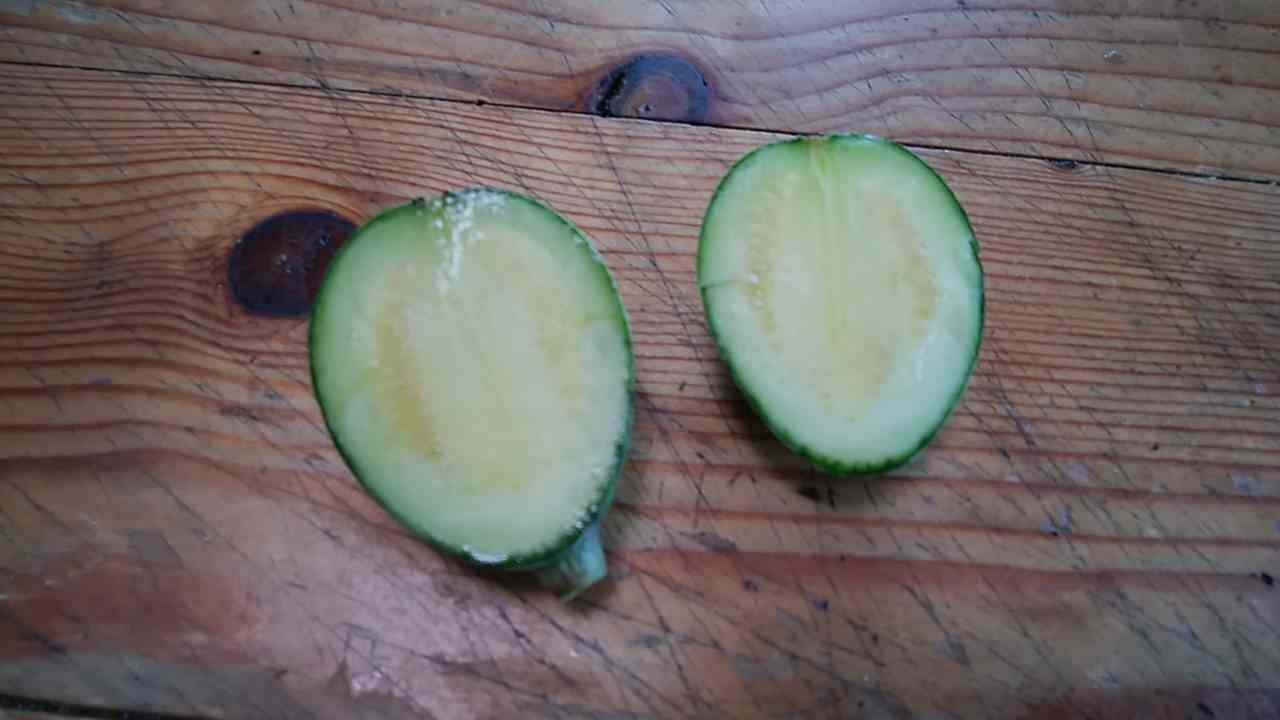 割ってみても 中もまだ青い。