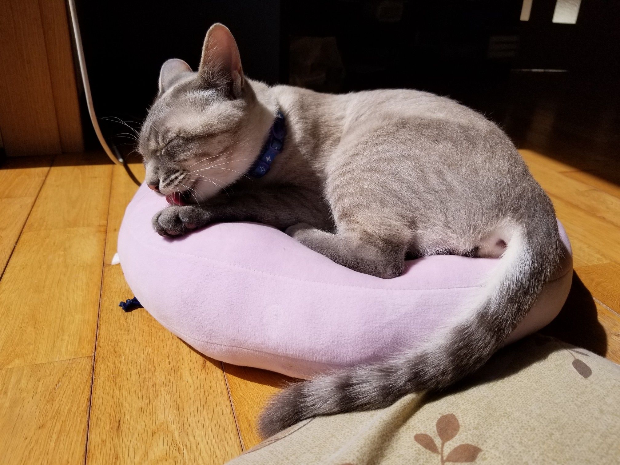 遊び疲れて変な格好てで寝てます。 こたつでは暑すぎて、 べろーん。 にゃんこもへとへとですが、 新型コロナウイルス肺炎の影響で先週からてんてこまい。 ただでさえ年度末はバタバタするのに、 いろいろ変更で余分な仕事か増え、 かつてない、異常な事態てす。 県内にはまだ感染者はいません。 忙しいととたんに、人間関係もおかしくなり、 先週から胃がいたくなりました。 にゃんこの癒しがないと生きていけないわ😃