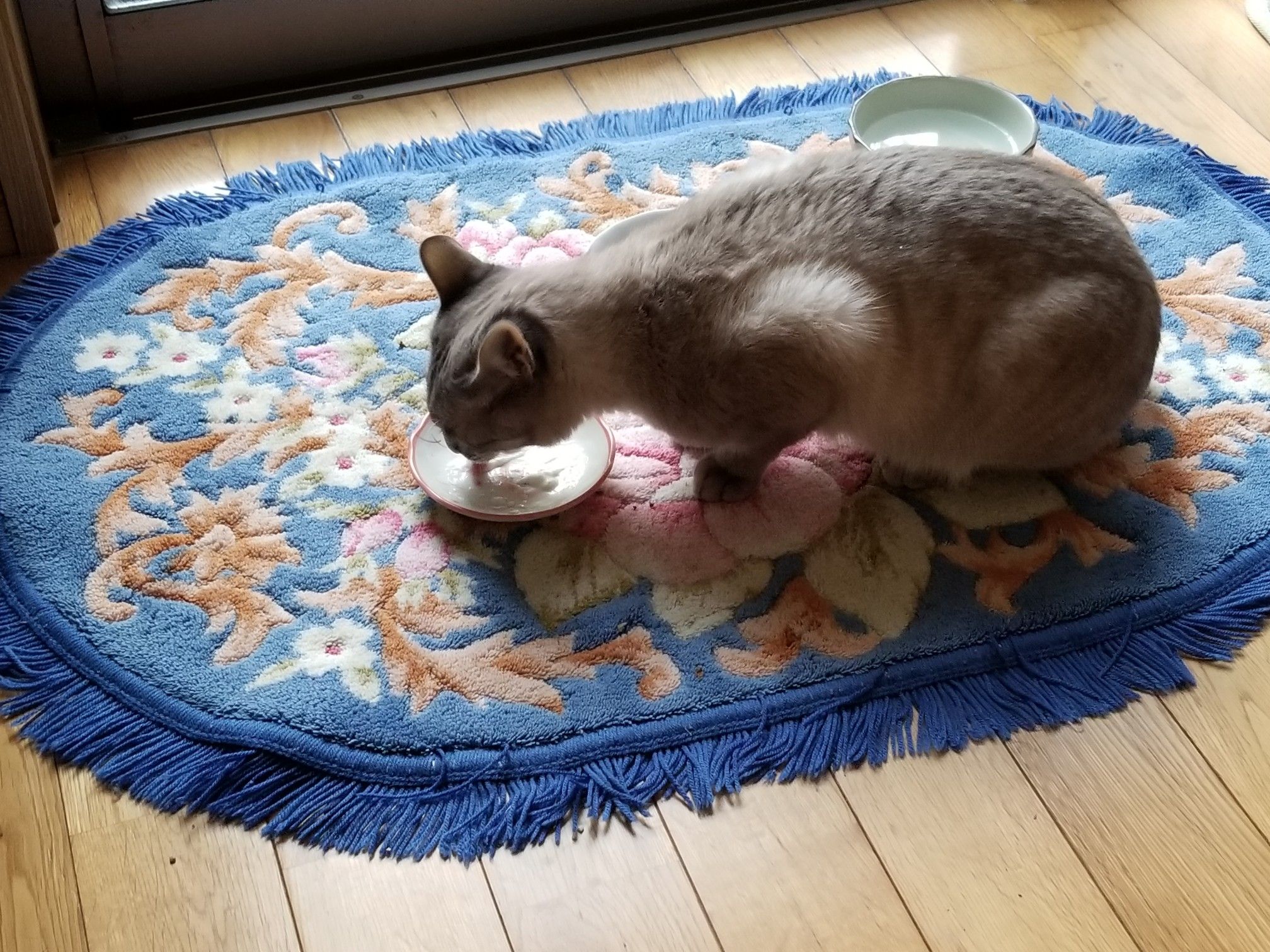 ヨーグルトを食べるマロ 野良猫キーコを見るマロ。 コロナ騒動で、相変わらず仕事はメチャメチャ。 でも、職を失ったり、家族をコロナ肺炎にかかったわけでもなく、ありがたいと思わなければ。 昨日から疲れか、頭が痛くてぐったり。 明日は祭日、お出かけできないことを良いことにゆっくりしよう。 野良猫キーコに、朝晩ご飯をあげていますが、さらにボスの黒がやって来ます。 黒は長毛の大猫で、いかにも恐ろしげ。 迫力が。キーコをいじめているようです。 猫の社会もいろいろ大変です。