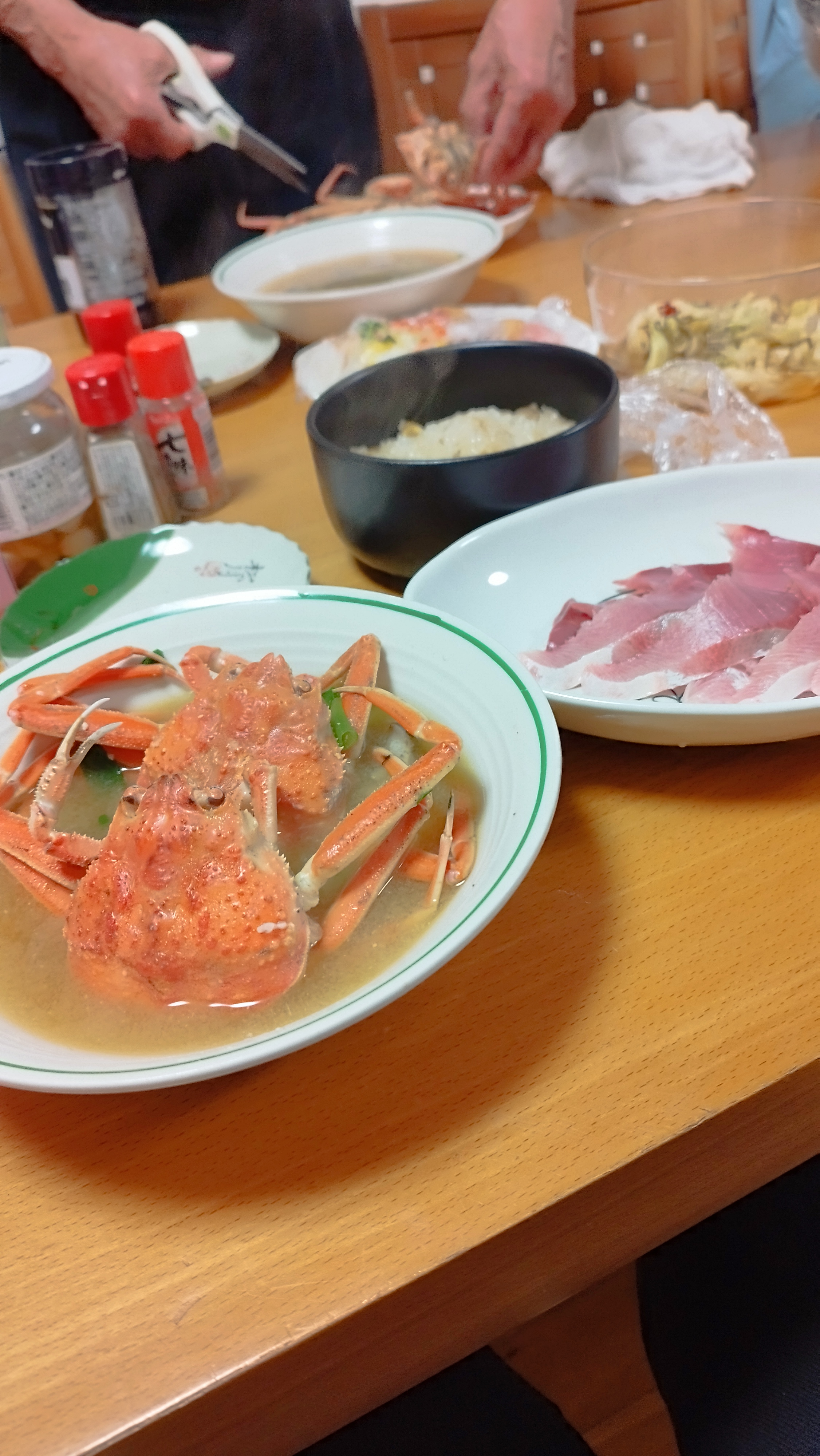 ここ一ヶ月ぐらい、本当に天気がわるいです。降ったりやんだり晴れたり、寒く安定せず。日が当たっていても30分もしないうちに雨。傘が手放せません。そのせいか冬野菜は春菊以外は成長が悪く、この冬は自家製の野菜は当てになりません。 義母が入院してのんびりと過ごしています。義母がいても同じことなのですが、朝から晩まで夫と2人きりだなーと感じます。良い面も悪い面もありますが、お互い信頼しつつも、心から頼らずという感じ。相手に何も期待しなければ腹も立たないし。近所の主婦仲間に聞いてもみんなそんな感じです。年を取ると言うことですね。 父が生きているときは、これで最後になるかも知れないと、様々な魚や肉を買って通いました。久しぶりに、4枚1000円という、リーズナブルな親ガニを買って味噌汁にしました。身は少なく面倒くさいですか、卵がお腹の外側にプチプチと、内側にねっとりあり、とても美味しいです。夫との元気な残りの日々の思い出作りもしないといけません。😁