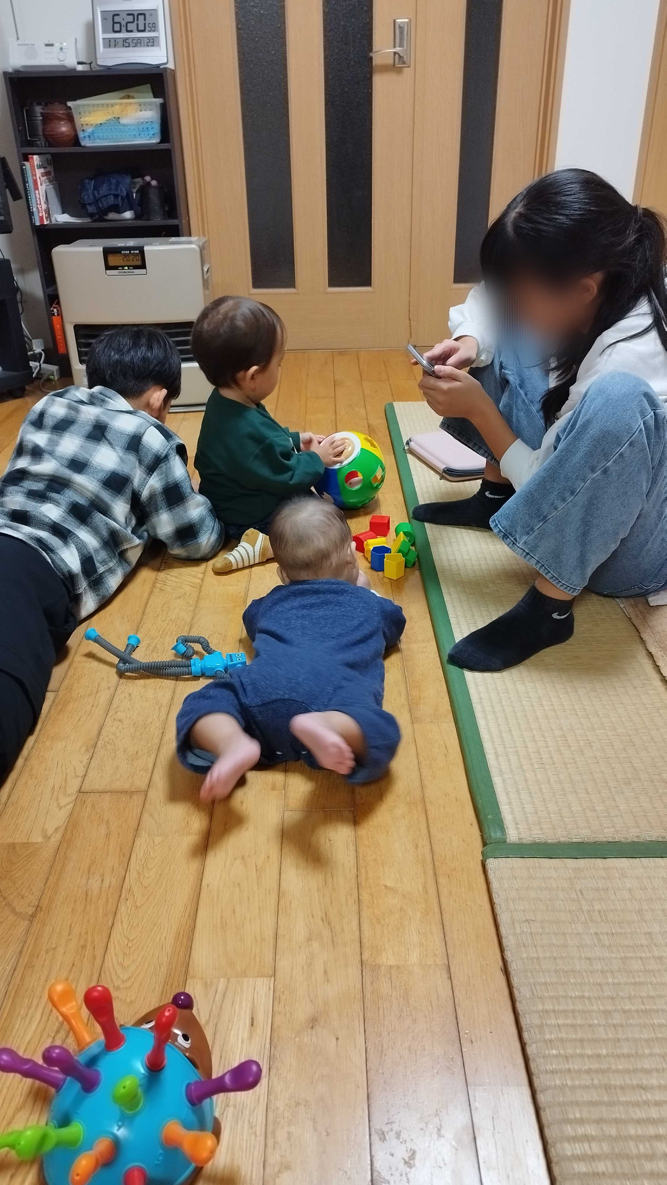 息子夫婦の結婚記念日で、2人のお食事の間、孫のお預かり。今回、6カ月になった三男くんが人見知りで、バァバの私が抱っこすると、大粒の涙を流してギャン泣き。嫌われても、この可愛さ!ハイハイもお座りも、あと少し。お姉ちゃんが仕方がないので、ママ代わり。 次男くんは2歳半。小さくて心配してたけどおしゃべりができるようになって、心も体も著しく成長。すごくわんぱくで、ずーっと家の中を走り回ります。 テンヤワンヤで楽しく夕食。4人兄弟仲良しです。無事にパパ、ママのお迎えのあと、どっと疲れるジジババでした。毎日こんなに大変な中、息子夫婦はよくやってるなー、と感心します。