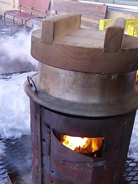 2009.1.31雨です。でも午後からは雪に変わりました。明日は雪、吹雪の予報です。しっかりとした降雪を期待してます。石打丸山携帯ショットコンテストでスキーセンター前のかまくらでの1ショットが第1回受賞作品に選ばれました。永田さんありがとうございました。日曜日の朝はぬか釜で自家製コシヒカリを炊いてます。お泊りの子供たちは釜に興味津々!!重くて大きな木の蓋、底にすすのついた釜。皆さんも美味しいおコメを食べに来ませんか?平日は1人1人に香り釜で召し上がっていただいています。