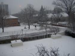 朝起きると・・・雪が積もってる~!!(ここんとこ気温がマイナスだったもんね~)窓からの景色でーす積もったのはほんのちょっとですが、真っ白になりました。お兄ちゃんが学校に行った後・・・ベランダに少し積もった雪で遊びました!サエ(1才3ヶ月)もはじめての雪。さわったら冷たくてびっくりしてましたさてさて、ベランダの雪をかき集めて・・・ミニミニ雪ダルマで~す 雪ダルマって2段だとおもってたのですが、こちらの「スノーマン」は3段が定番です。しかも鼻がとっても細長いニンジンですよね~。いつも不思議だったのですが、日本のころんとしたニンジンと違って、こちらのニンジンは細長~い品種。きっとこちらの雪ダルマって、モデルが外国人(アイリッシュ系かな?)だろうから、3段で背が高くて、鼻も長い高いのでしょう!!