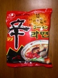 今、住んでる街は韓国人が多いので、韓国系スーパーがあります。日本の食材も一緒に売ってるので、よく利用するのですが、以前から気になってた「辛ラーメン」を買ってみました。今日は「マーチン・ルーサー・キングJr デイ」で小学校はお休みなので、お昼に食べてみましたよ~。うっ、め~~~ちゃめちゃ辛いです!! わさび、からし系が苦手な私・・・。半分も食べれませんでした~~口も喉の中もはれてヒリヒリ・・・きっと胃の中もヒリヒリきてるんだろうなぁ・・・辛いのが好きな方、是非お試しください!!