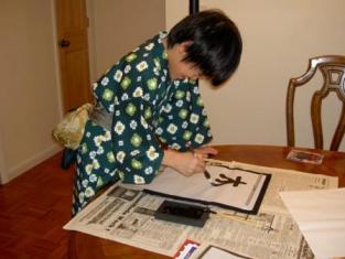あけましておめでとうございますブログを通してお友達になったみなさん、いつもブログをみてくれてるお友達や家族、今年もよろしくおねがいしますね!!ぼちぼちですが、更新していきま~すさてさて、すっかりご無沙汰してたので忘れられてしまってるかも・・・・こちらニュージャージーも日本から半日おくれで元旦を迎えました!冬休み中なので朝寝坊ばかりしてたのが、今朝は5時にパッチリ起床。でも朝から雨・・・・気持ちはすがすがしく新年を迎えましょう!!ということで、お雑煮を食べたら『書初め大会』です~。お兄ちゃん、筆を持ったのが始めて。私は墨をこぼさないかドキドキ(ちなみにこの着物、うちの兄が小学生のときにきてたお下がりです~。 お兄ちゃん、覚えてるかしら??)お恥ずかしながらみんなの今年のスローガンを一文字で表しました~左から・・・サエ(1才2ヶ月) 「つ」???お兄ちゃん(2年生) 「算数を頑張る」ママ 「いつも笑顔で」(パパも書初め参加してもらいたかったな~)では今年もよろしくお願いしますっ!!お休みしてた間の日記もぼちぼちアップしますので、お暇なときに読んでくださいね~。