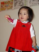 昼から雪がちらほら降りましたこの冬はじめての雪が降りました。小学校にお迎えに行ったら、どの子も「Snowy!」って喜んでました。子どもって雪が好きだなぁさて、最近のサエ(1才3ヶ月)は、 おしゃべりが上手になってきました『ママ』ははっきり言ってくれます。『にぃにー!』(お兄ちゃん)も呼べるようになりました。でも・・・・「パパ」はまだ言えません・・・・パパさんが一生懸命教えてるのですが、ニッコリしながら『ま・ぱ』と言うのです・・・。また、機嫌のいいときは「りらりらりらりら~♪」と言いながらいたづらしてます。