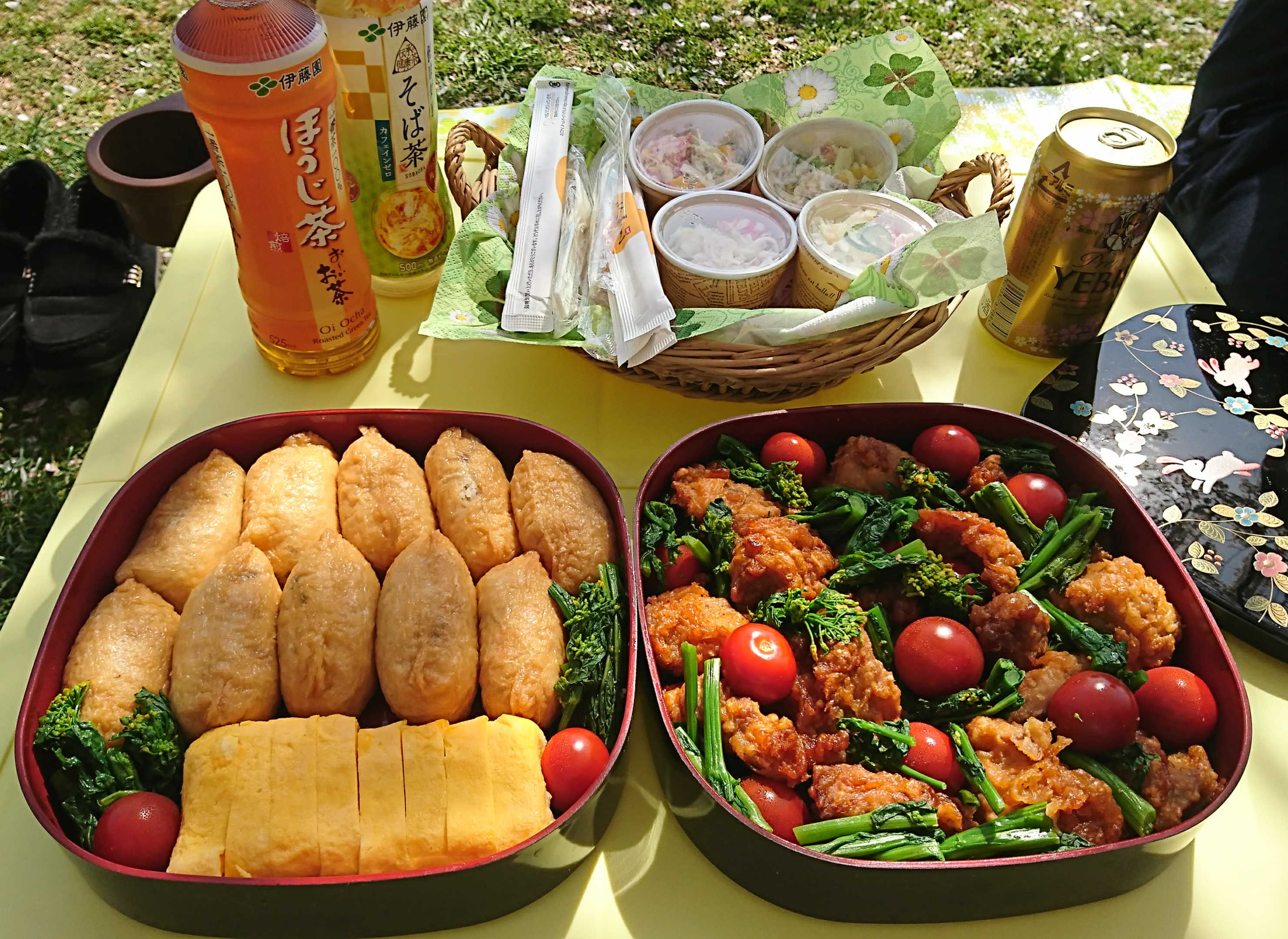 外でシートを敷いてお弁当を食べたの、久しぶり。