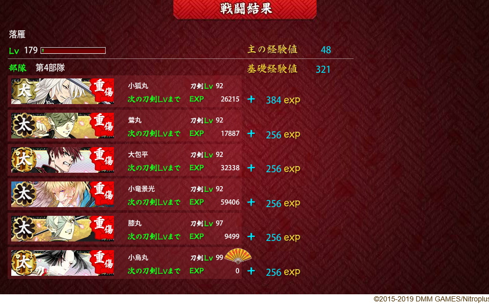 こっちも極短を出したところで、ウチは薬研と不動の66が最高練度だもん。