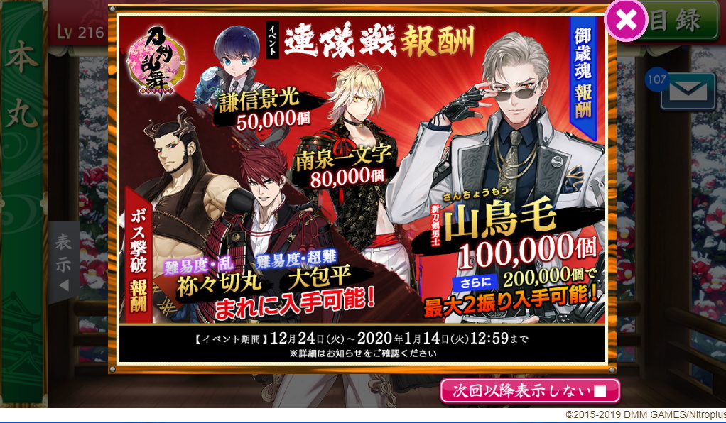 12/24~1/14で冬の連隊戦、御歳魂集めが始まりました。