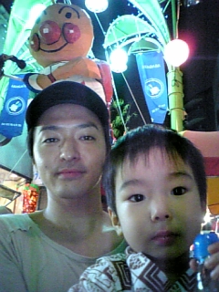 ダンの地元、阿佐ヶ谷の七夕祭りへ。七夕まつりといえば頭上にぶら下がるハリボテたちが有名ですが、お気に入りといっしょに。 混み過ぎててうまく撮れませんでしたがオリンピックウェアをまとったアンパンマンが触角の折れたバイキンマンを投げようとしています。私もすくえたことないのに息子3才、金魚すくちゃうし!! むぐぐ。。なんか、めっさ大盛りの焼きそば食ってるカップルいるなぁーって思わず凝視してしまった・・・ら、なんと友人M夫婦!な、納得。さすが※ばんざい。(※「食いしん坊」の意)