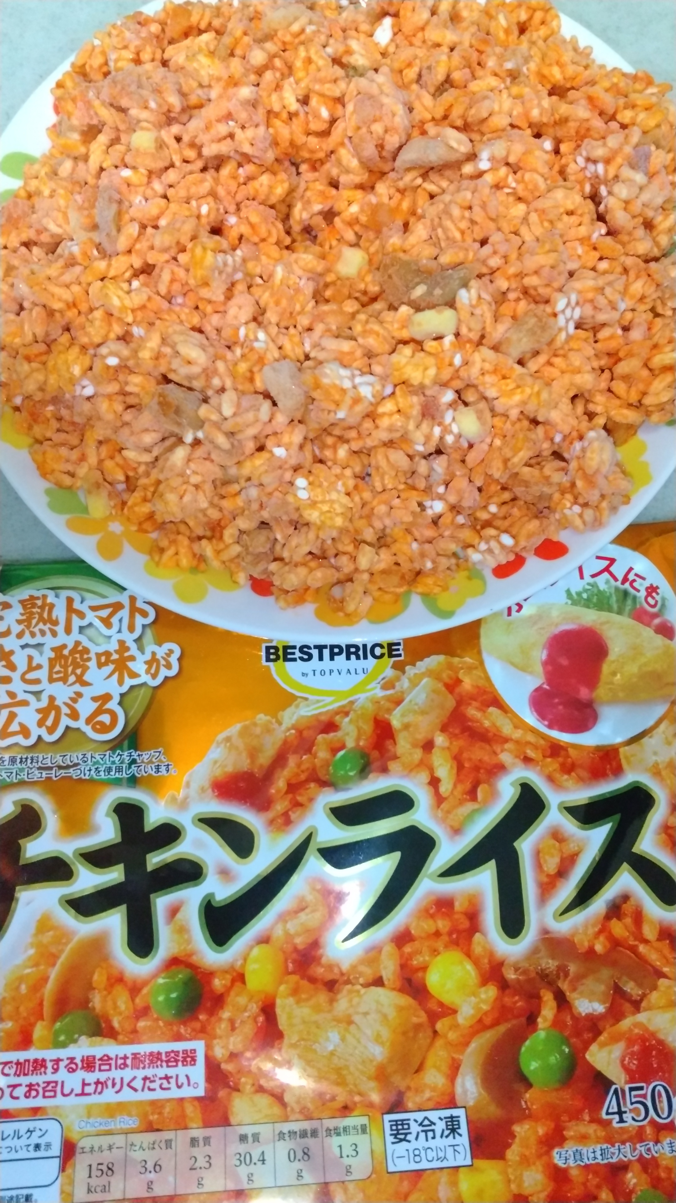 トップバリュのチキンライスを食べてみました。肉とかはまぁ、普通の冷凍食品な感じでしたが、好みが分かれるのはケチャップの酸味が強いところでしょうか・・・・・。たまごで包んでオムライスにするなら丁度よい感じに感じました。ランキング的には以下の感じですね。1.高菜ピラフ2.チキンライス3.ガーリックピラフ