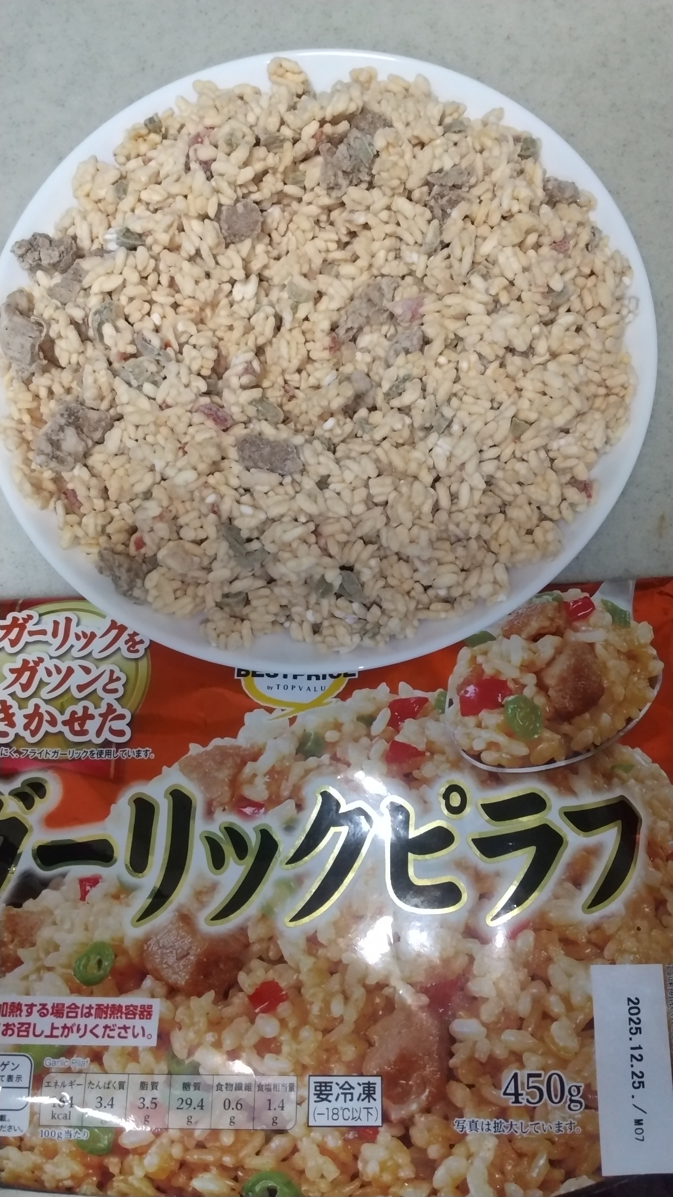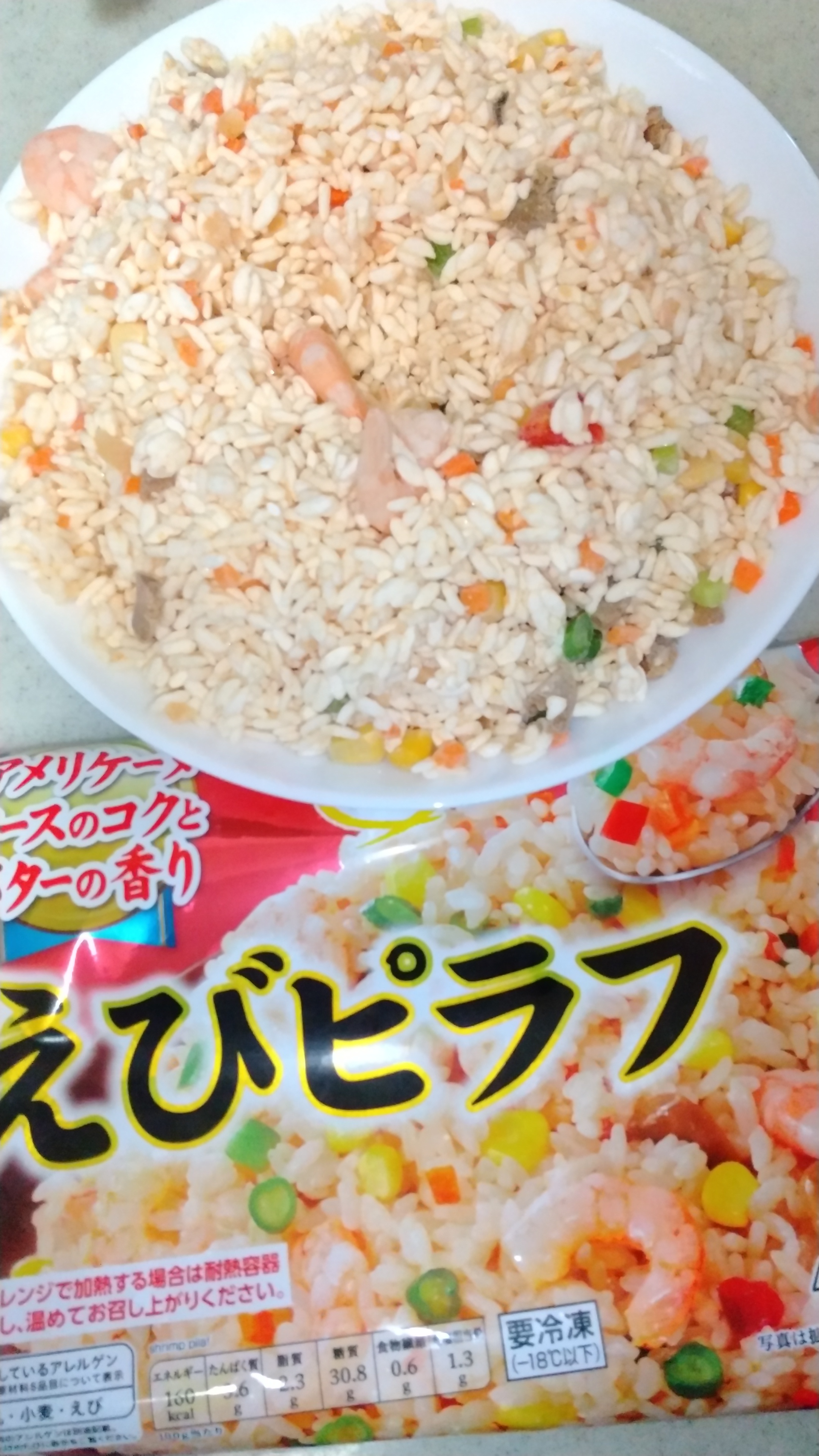 トップバリュの冷凍めしの最後はエビピラフです。感想としては、エビがちょっと生臭い。ということで冷凍めしラインキングは以下の感じになりました。1.ビビンバ (高菜よりは万人受けするかな??)2.高菜ピラフ (欠点が少ない)3.チキンピラフ(酸味が強いけど、生臭いのよりはまし)4.エビピラフ(エビが生臭い)5.ガーリックピラフ