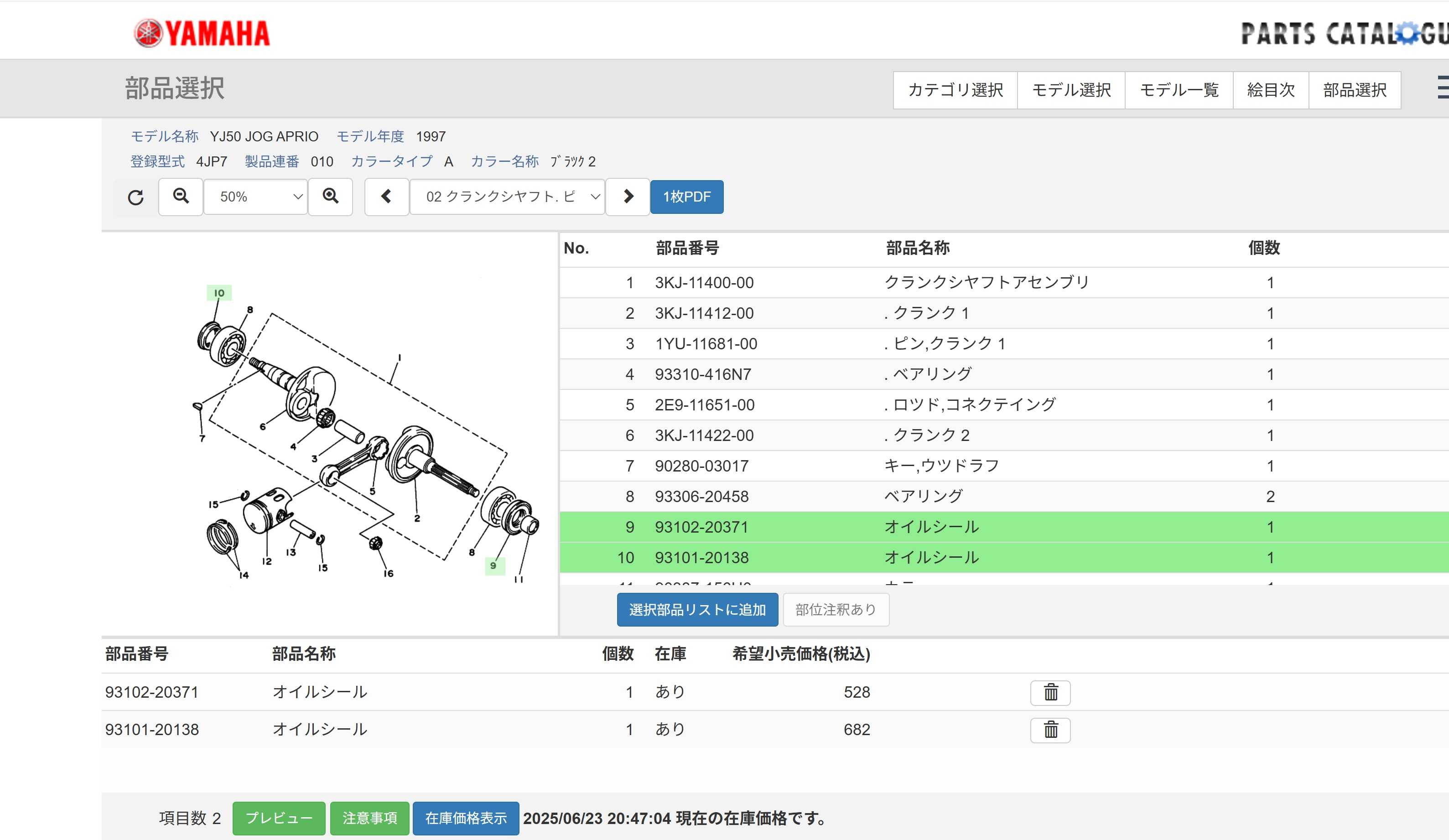 エンジンがかかったので、公道に出てみました。エンジン回転数があがらない・・・・・。圧縮はあったし、エンジンがかかるってことはスパークは飛んでいる。キャブレターも基本的には弄ってないので考えられるのはマフラーのつまり・・・・。症状的には2サイクルエンジンで、センタースタンドで、リアタイヤを浮かした状態でアクセル開けても、マフラーからの排ガスが少なくて、エンジンが高回転まで回らない状態。の原因推定をcopilotに相談した結果以下の結果らしい。この症状から考えられる主な原因は、以下のようなものが挙げられます:◉ 1. マフラーの詰まり(カーボン・オイルスラッジ)2ストエンジンでは未燃焼オイルがマフラー内に蓄積しやすく、特に長期間清掃していない場合は排気効率が著しく低下します。 → 排気が抜けない → 混合気がうまく掃けない → 高回転で失速、という流れになります。◉ 2. キャブレターのセッティング不良(濃すぎ)高回転で吹けない場合、メインジェットが濃すぎることがよくあります。 特に無負荷状態(リアタイヤ浮かせた状態)でボコつく・回らない場合は、燃料が濃すぎて失火している可能性が高いです。◉ 3. スパークプラグの劣化・かぶりプラグがカーボンで真っ黒になっていたり、火花が弱いと、高回転域で失火しやすくなります。 → プラグの焼け具合をチェックしてみてください。◉ 4. エアクリーナーの詰まりや吸気系の異常吸気が制限されると混合比が濃くなり、高回転で失速します。 → エアクリーナーの清掃や、吸気経路の確認を。◉ 5. 点火系(CDI・イグニッションコイル)の不調アイドリングや低回転は問題なくても、高回転で失火するCDIのトラブルは意外と多いです。◉ 6. 圧縮不足(ピストンリング摩耗など)圧縮が低いと、高回転での燃焼力が足りず、回転が伸びません。 → コンプレッションゲージで測定してみると判断しやすいです。この中でも、マフラーの詰まりとキャブの濃さは特にありがちな原因です。 まずはプラグの焼け具合と、マフラーの排気圧(手をかざして弱いかどうか)をチェックしてみると、方向性が見えてくると思います。やっぱり一番怪しいのはマフラーだな・・・・。消耗部品らしいし、安いの買ってみるか・・・・。エナジープライス Energy Price -3YK マフラー ジョグ 3KJ NBM004 JP店5000円以下で購入できますね。