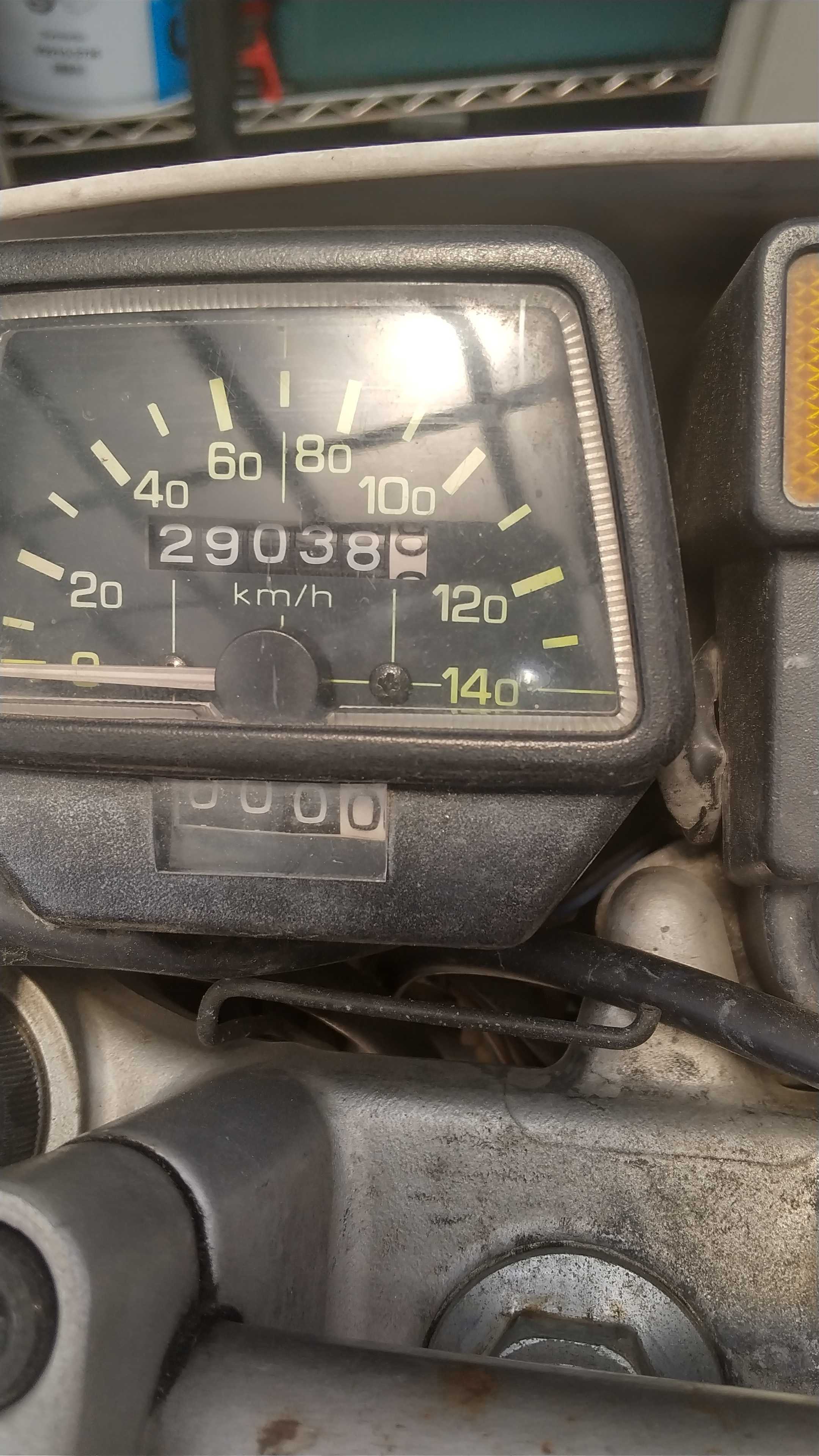 インマニ交換したらエンジンかからなくなったので、バッテリー近くにあるヒューズ(7.5A)をチェック。問題なし。ついでに、圧縮を測定してみると6k程度。(冷間時ですけどね・・・。)copilotさん情報だと7~10くらいらしい。(冷間と温間では1~3k程度変わるらしい)若干、低いかなっと感じますが、まぁ、インマニ交換前までエンジンかかっていたのでまずはOK。っで、プラグを見ると濡れている。(プラグは白かったので、2次エアで燃料薄かった模様・・・。)電気も大丈夫そうだし、燃料は来てそうだし、ガスは来ているし、圧縮もあればエンジンはかかると思うけどってことで、再びキックしてみると、エンジン始動!!駐車場だとそんなにエンジン回せないので、最低限のカウルを装着して、公道走行してみるか・・・・。
