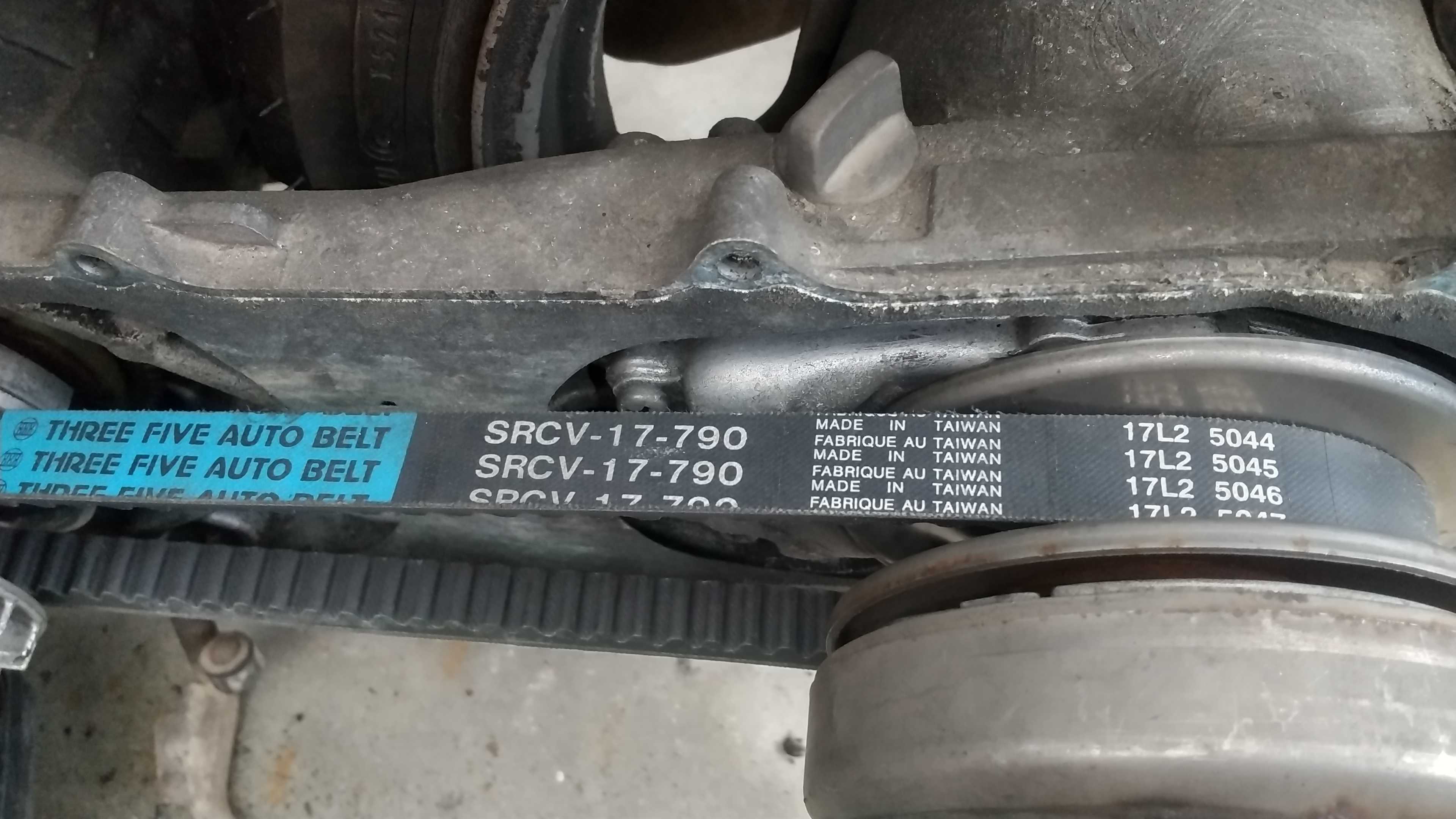 JOG アプリオを回収してきました。今回もジャパンレンタカーで軽バンをレンタル。【ビジネス貨物】車種・料金 | 24時間営業のジャパンレンタカー6時間で3850円でした。っで、スロープはカブの時、同様スポーツドリンクなどのケースを使用。カブ主になる | 趣味の部屋 - 楽天ブログ今回はセンタースタンドで車体持ち上げて、フロントタイヤを助手席に押しつけて横はスポーツドリンクの箱で固めて固定。っで、回収してきました。タイヤは空気抜けていたので、早速、空気入れてみる。前後とも溝はあるけどフロントは90/90R10で、リアは80/90R10JOG APRIOYJ50/S/SP/EX(4JP/4LV)-since 1994- - バイクの系譜ネット情報だと前後共通で80/90R10のようだけど・・・・・。さすがヤフオク。タイヤサイズは大きい方が乗り心地が良いはずなので90/90R10に揃えるかな・・・。っで、エンジン始動。キック一発でエンジンはかかります。スロットルを回すと回転が上がるまでに時間がかかる。駐車場で走行してみる。走るけど、加速してきそうな感じでない・・・・。(エンジン回転数が上がらない)ブレーキは前後共に引きずりとかは大丈夫そう。(ドラム)まずはベルト部分をご開帳してみてですね・・・・・。