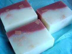 自分の町の特産品を石けんの材料に入れるという 特産品石けん交換会という企画に参加させてもらいました ここいら辺では三浦大根が、この時期有名なのですが 近所のスーパーや八百屋さんでは、まだ出回っておりません あと1週間もすれば…との事ですが 年末忙しいし、石けん納品ぎりぎりだし… と思っていた所、幻?といわれているらしい 三浦大根焼酎というものを、友達から貰い受けて しこんで見ました。。。 しかしここで事件が・・・・・ 8つに綺麗に分かれるはずの石けんが7つになってしまった ど・どうしよう…焼酎は終わっちゃったし… しょんぼりしながら、端っこを丸めてみると(手袋しています) まんま粉吹き芋石けんの誕生~~~♪ これ、自分的には良いかなと思ったのですが 手丸めは無効ですかね・・・? やはり作り直したほうがいいのでしょうか・・・ ちなみに送る分は15個で、そのうちの半分がこういう丸ちゃんです・・・ どうかアドバイスを・・・ こちらはノーマル版↓ う~~~ん 困った・・・ 企画された方に聞いてみることとします。。 レシピの詳細が届く前に既に作っちゃった地酒石鹸もあります (レシピはマルセイユでオプションや苛性ソーダの量も決まっています) オリーブオイル 月見草オイル ウィートジャームオイル パームオイル パーム核オイル モーラバター ラノリン キャスターオイル 苛性ソーダ 地酒 精製水 豆乳パウダー レッドパーム ピンククレイ ホホバオイル リッツァキュベバ レモンマートル シダーウッド ジュニパーベリー パチュリ カナンガ プチグラン 想像通りすっきりした香りです さてさてこれからプリンターを持ってパソショップへいってこなければ… 年賀状が~~~~(大汗) 追記:プリンターお陀仏に‥‥今までありがとう!! コピー機能もついた中古ちゃんが 我が家に来てくれました これからお世話になります!