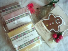 あとりえ♪ものづくり大好き♪のじゅにぱーべりーさんの20000HITカウプレ企画に 参加して、見事当選!こんな素敵なものを頂いちゃいました♪ 今日明るくなるまで開封を待ち・・・ わ~い!わ~い!お宝ザックザクだぁ~~♪ クリスマスチックでとっても素敵だな~ 石鹸のラッピングも丁寧で購入した気分です キャンドルも頂いてしまいました♪ 彩りが可愛い☆ツリーのキャンドルも素敵です こんな可愛いキャンドルもあるんですね~ しかし勿体無くて使えそうにありません。。。 こんな可愛いグッズまで。。 早速我が家のツリーに飾らせていただきました ちょっとおとぼけちゃんのような表情がなんともいえません 素敵な石鹸さんたちのお出まし!! 一番手前のJUST FOR YOUのスタンプが押された石鹸は Choco Nut Cake Soap マーブルとレイヤーのコラボが美しいですね トップのお飾りが美味しそう!を高めています マカダミアやウォールナッツオイル、牛乳、パウダーシュガー・・ しっとりしそうな甘い香りの石鹸です こちらリクエストさせていただきました♪ 右奥、薔薇のモールド石鹸さんはCamellia Rosehip ローズヒップを漬け込んだ椿油にアーモンドパウダーやミルクも 入った、上品な薔薇の香りが漂う石鹸さんです このモールド、とっても素敵ですね~ 左手前、花のモールド石鹸さんは黒糖あずき石けん こちらもリクエストさせていただきました~ この色合いがたまりません♪ツルツルで香りも 甘すぎず、シャープすぎず・・すっきりとした 洗い心地になりそうですね 一番奥の3色のレイヤー石鹸さんはRosemary Clay Soap こちらもリクエストです! ローズマリーを漬け込んだオリーブオイルに ピンククレイとガスールが入っています 香りも柑橘系とローズマリーが良く調和していて とってもいい香りですね! こ~~~~んなに沢山頂いてしまいました! 本当にいいのかしら・・と思いつつも とってもとっても嬉しかったです♪ 石鹸もキャンドルも大事に鑑賞して使わせて頂きます これからもどうぞ宜しくお願い致します~♪ (解禁したら私も送りつけますのでどうぞご了承を・・)