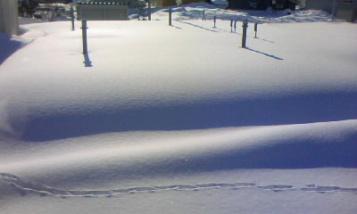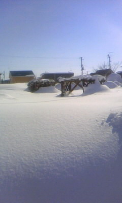 本当に飽きずによく降る雪だ。今朝も起きたら膝ぐらい雪が積もっていた。 こうなってはもはや災害だ!!毎日降り続く雪で庭も埋まってきた。1週間で降った雪としては過去最高では無いだろうか。私が小学生の頃、二日二晩猛吹雪に閉じ込められ、2メートル以上積もって家から出られなくなった事があったが、それ以来かも知れない。娘が小学校に上がる前の年ぐらいに、二階のベランダから軒先の雪山に降りれた事があった。おそらくその年に匹敵する降雪量だ。まだまだ続きそうなこの雪。道路の排雪は1週間先だ。それまで生活が出来るだろうか?