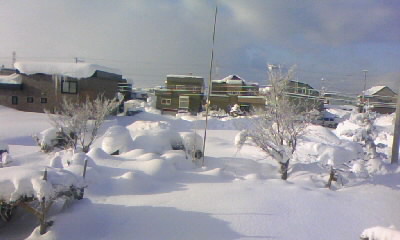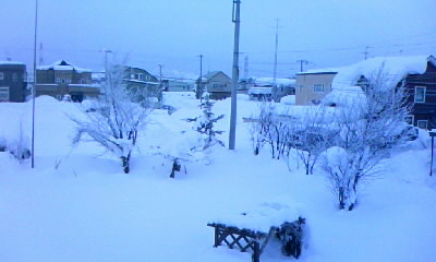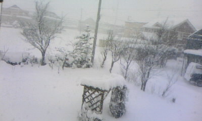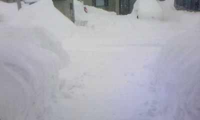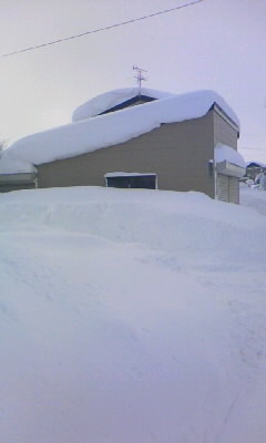 今日は朝から大雪!家から一歩も出られませーん。朝から妻が除雪をして出勤したが、昼には15センチ以上は積もったので、息子達を狩り出して除雪してもらった。しかしその後も雪は間断なく降り続き、とうとう大雪注意報が発令された。高速道路も止まっているようで、 今日は交通も麻痺状態に近い。夕方には20センチ近く積もったので息子達を再び狩り出し本日3回目の除雪。年が明けてから一気に帳尻を合わせるかのごとく、雪が降り続く。明日は長男の成人式。無事に行けるのだろうか?自分の時も大雪だった。成人式は何故か大雪になる。それも人生の思い出になるか。