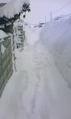 今朝も起きたら雪がこってり降っていた。フワフワの雪だったが膝くらいある。妻は早番で除雪出来なかったが、幸い近所の人が機械で飛ばしてくれた。玄関と車庫前をやらないといけないが、長男は昨夜から友達が泊まりに来ていて使い物になりそうにない。次男はゲームに夢中で一向に動いてくれない。娘は友達が遊びに来た。仕方ないので自分で除雪に出た。雪が軽かったので何とかなったが、かなり辛かった。玄関から道路に出るのに回廊状態。これでも少し広げた方だ。除雪も考えようによっては良いリハビリだ。無理をしない程度にやってみるか。 排雪まであと2日か。もう少しの辛抱。