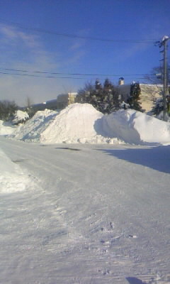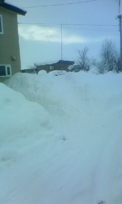 今日は吹雪も一休み。昨日、メインの大通りで排雪をしていたので、散歩がてら見に行った。我が家の庭は積雪が私の背を越えました!大通りが見違えるように広くなりました路地はどこもこんな状況です歩きやすくなったと喜んでいたら先日も歩道を塞いでいた家の前はこんな事に家の前を駐車場にしています。ここから先は除雪車も入れず、歩道は無くなっていました。通学路は車道を歩くしかありません。これは土木事務所か教育委員会に連絡した方が良いのかな?小学校も始まるし事故が起こってからでは遅いし。近所で揉め事は嫌だけど言わなきゃダメかな?全く自分の事しか考えない非常識な人間には困ったものだ。