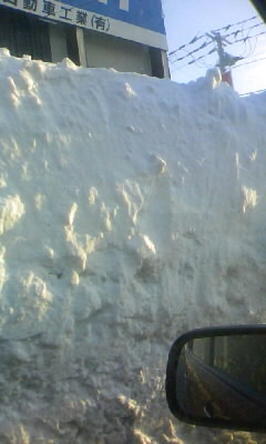 今日は天気予報に反して一日良い天気。妻の帰りを待って久々にお買い物に出た。国道脇の雪の山そそり立って回廊のようになっています。今の所片方の車線しか排雪されていないので、 反対車線はまだ通りにくい状況は解消されていません。除雪費は文字通り溶けて無くなるもので、もったいないっちゃーもったいない。でもしない訳にはいかないので、頭が痛い問題な事に変わりはない。トライアルに行って店内を一生懸命歩いてきた。店の中は良いけれど、駐車場はスケートリンクで恐怖だった。一時よりは道路状況も改善されたようだ。明日は勝負の面接がある。札幌に出るのは1ヶ月ぶりだが、正直言って歩く事には自信がない。すっかり鈍ってしまった。気持ちを入れて頑張らないと。勝負!!