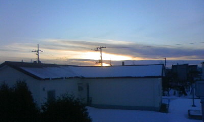 年を取ると段々夜更かししなくなるもので、昨夜も近所の神社に初詣に行って、帰って来たらすぐに寝てしまった。明けて新年の初日の出を見ようと待ち構えていたら低空に雲がかかっていてご覧の通り。上の息子は友達とどこぞに初日の出を見に行ったが、微妙に見えなかったらしい。 今日はゆっくりと時間が流れて、駅伝を見ているうちにいつの間にか過ぎていった。今晩は妻の実家に行って新年会。そのままお泊まりなので早めの更新。今年もよろしくって事で!