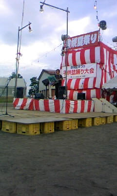 長い一日だった。朝から吐き気がひどくて、集合時間にも少し遅刻したが、何とか準備も終わって開始時間には間に合った。子供みこしで祭りがスタート。謎の怪人来襲!謎の中国人も来場?バンドあり、ゲームあり、町村議員の挨拶ありで、バラエティーに富んだ内容だったが、近年まれに見るスムーズな進行で、完璧だった。天気もまずまずだったし、明日も今日のように上手く行くと良いな。また明日頑張ろうっと。