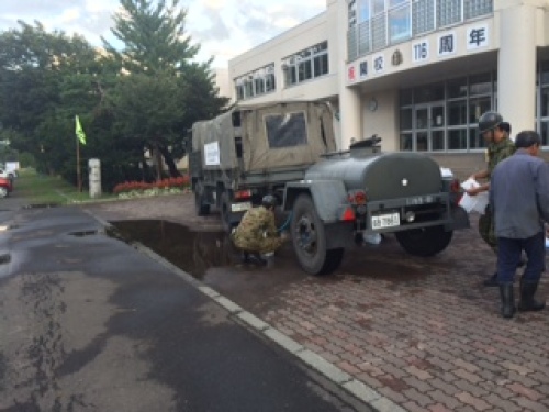 今年一年日本を席巻した異常気象がとうとう我が町にもやってきた。雨自体の被害はないが、上流で大雨が降った影響で川の水が濁り、取水口で水を取れなくなってしまった。おかげで市内の広範囲で断水する事態に。自衛隊の給水車が来て給水。生まれて初めての経験だ。でも震災の被災者から見れば可愛いものだ。明日いっぱい続くというので、トイレの水が差し当たって一番不便かな。早く復旧する事を祈ろう。