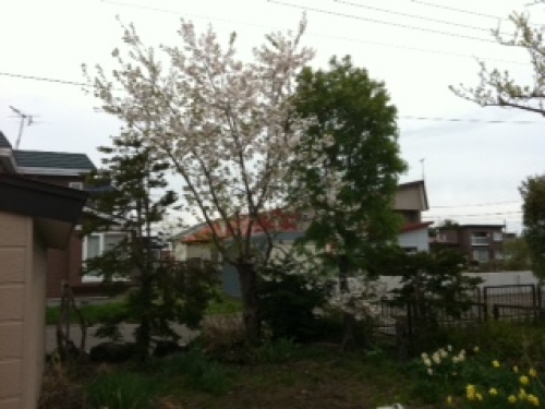 朝から冷たい雨が道路を濡らす。体が動かない…。しかし、今日は休めない。息子に送って貰って何とか出勤。今日で何とか目処が付いたので、明日からは少し楽になりそうだが、今日一日で体にはかなりのダメージが残った。昼からも雨が止まずどうしようか?思い切ってタクシーで帰ろうかと思っていたら、幸いな事に妻が迎えに来てくれた。感謝、感謝。帰ったらまだ止まぬ小雨の中ようやく我が家の桜も開花した。大分葉っぱが出てしまって残念だが、無事に咲いてくれて良かった。明日は天気が回復してくれるだろうか?もう体が悲鳴を上げている。耳鳴りと吐き気が酷い。体が真っ直ぐに伸ばせない。弱音を吐いても何も変わらないので、気合いを入れて頑張るしかないんだな。