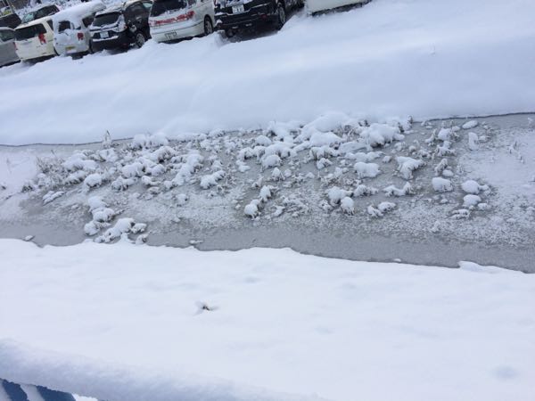 ここ最近の寒波で氷が張っていた池が、 昨日雪で完全に凍りました。 魚たちはどうなったでしょうか?
