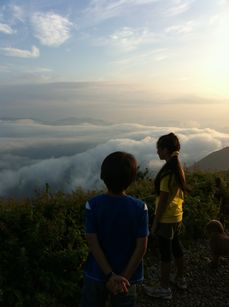 夏休みの思い出つくりかのこ、小学生最後の夏休みだし、いろんなとこに、できるだけ、連れてってあげたいなって。今回は、伊吹山御来光ツアーにいってきたよって、ツアーでもなんでもないけど・・・。ワラ朝2時半に起こして、3時にはおうちを出発もちろんまっくら駐車場に着いたら、半そででは寒いくらいまっくらな、山道を月明かりだけをたよりに、40分の遊歩道を選択し、登っていったよぉ山頂についたら、薄暗い明かりがさしてたの。5時10分すぎ、いまかいまかと太陽があがるのをまつ。ほかの人たちからも、そおんな声があがってた。太陽が見えてからは、あっという間~すっごい、きれいだったよぉ帰りは、ゆ~っくり遊歩道を散策しながら、降りてったよチェリコも行き帰り、抱っこもせがまずに、ちゃんと歩いていけたんよぉちょっと霧がかかってたけど、それはそれで、すっごい綺麗だったよオススメ、よかったら行ってみてね