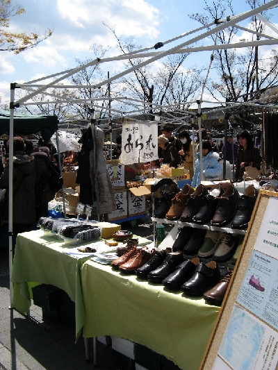 --------------------------★★★有料プランにしました。ですが、【はてなダイアリィ】に画像からリンクで飛べば、より大きな画像を見ることができます。人気ブログランキングに参加しました。登録名は「TREK-Y5」です。って云う事なので、よろしくお願いします。★★★----------------------------【weblogでぼやく】からの転載記事です。-----------------------------早くも、4月になりました。コートを置いて、管理人は街の中を、歩いてみました。日差しはいいのですが、風はまだまだ冷たかった。桜はもう少しで満開になりそうな感じでした。開花宣言の後、少し冷え込んだせいで、開花が遅れたようです。梅小路公園での「一木手づくり市」へも歩いて行きました。MTBには休憩して戴きました。まずは、入口近くの、【A.L.C. cafe】さんのお店を訪問しました。管理人との雑談に応じて戴きました。「メレンゲを絡ませたようなクッキィー?」を買いました。「一木手づくり市」は、今日もたくさんの人出で賑わっていました。A.L.C.さんのお菓子を携えて、靴のおじさんのお店と、母&娘のお店に行ってきました。今回、管理人は靴の足入れ調整をして戴きました。中敷きでの調整でしたが、気になっていた小指への負担が嘘のようになくなりました。靴のおじさんのマジックです。強風でテントが飛ばされないように、ほとんどのお店のテントの天幕は外されてしまいました。あまり見かけない、珍しい光景となりました。今日もあちこちからいろんな差し入れ?がありました。育ちゃんさん、桂子さんにも会えました。桜の味がする。桜饅頭?、ふわっと揚げたせんべい、粟おこし、おにぎり、メレンゲ、いかなご、フキノトウの味噌和え等々、ピクニックに来たみたいでしたよ。管理人は、「母&娘のお店」にお願いしていた、「鼻毛鋏」用のケースが仕上がってきました。桂子さんどうもありがとうございました。とっても素晴らしい出来栄えでした。スナップボタンの部分は、こんな可愛い「ボウリングのピン」があしらってありました。これって、間違いなく、遊び心溢れた作品ですよねぇ。画像はありませんが、試作品のショルダーバァッグに、何人かのお客さんの、熱い視線、注目が集っていました。桂子さんの自信作なのですが、更なる、アドヴァイスや改良点の指摘を受け入れて修正すれば素晴らしい完成品になるものと思いました。手づくり市の良さは、作り手とお客さんとがダイレクトに会話できるところですね。お客さんの要望、ニーズを、直に作者は感じ取れるからです。人気ブログランキングに参加しています。ブログ名が長過ぎたので、登録拒否され、やむなく、【TREK-Y5】にしました。検索は【TREK-Y5】でお願いします。ぽち、ぽちっとよろしくお願いします。《管理人》