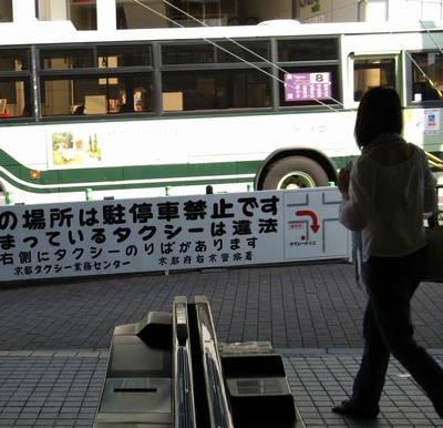 ★★★有料プランにしました。掲載画像から、【はてなダイアリィ】に飛べます。楽天ブログではパソ動画を貼れないため、リンクしました。管理人が投稿した、ニコ2動画も見ることができます。★★★----------------------------------------------いつ頃からか?タクシーの客待ち違法駐車ができないような道路に変わっていました。ま、交差点内のカーヴに沿っていつもズラリと列んでいましたから、左折車両には迷惑な違法駐車でした。杭が何本か打たれ全く駐停車ができなくしてありました。おまけにこのデカデカと大書された看板が置いてありました。タクシーの客待ち車って緑信号で横断する人達の間をすり抜けたりして非常に危なかったのです。もち、左折車両の進路妨害をしていました。by Tweet Button