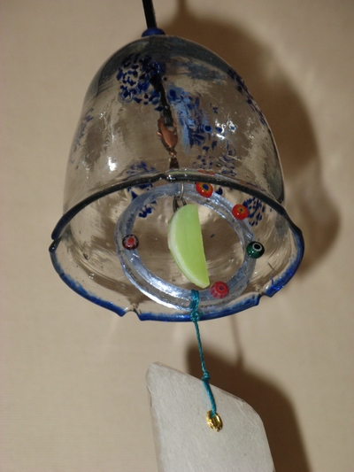 ★★★有料プランにしました。掲載画像から、【はてなダイアリィ】に飛べます。楽天ブログではパソ動画を貼れないため、リンクしました。管理人が投稿した、ニコ2動画も見ることができます。★★★----------------------------------------------先日の弘法さんで惚れ込んで買っちゃいました、これこの風鈴を。河内風鈴だそうです。こちらのお店は神奈川県川崎市の【川崎大師】や奈良県橿原市の【おふさ観音】とかの風鈴市に、出店されたそうです。1年を通して、厄除けとしていろんなところで露店販売されているとか。廃棄されたグラスの空きビンを再利用されています。この風鈴のリングは瓶を輪切りにカットしたものを使っています。半月形の月はステンド・グラスだそうです。こういうの、管理人も作ってみたくなります。2010Sep21の弘法さんで出店中の河内風鈴屋さんの様子です。☆河内風鈴さんのHPです。体験教室を開催されています。2時間で3500円ですが、工房が狭いので一回に2人だけだそうです。http://www.kawatifuurin.com/こちらで戴いたチラシからの抜粋ですが、風鈴の由来と河内風鈴の特徴を揚げておきます。☆風鈴の由来(原文通り)唐の時代、玉片のあたる方角で吉凶を占った風鐸が始まりで、日本の僧侶が形を整え音色を奏で、聞く信仰が元になりました。風鈴と呼ばれるようになったのは、鎌倉時代百万遍の知恩寺を建立された、法然上人が風鈴(ふうれい)と名付けられ、後にふうりんとなります。風鈴は夏の風物詩だけでなく、地方では災いからの厄よけ、故人を偲ぶ音色として今も重宝されています。☆河内風鈴の特徴(原文通り)河内風鈴は、瓶を砕き熔解させ、瓶のかけらを溶着させて模様と音色を変化させ、吹きガラスで創作しています。大量生産・大量廃棄のシステムが変化し、つくり手とつかい手の交流、素材の優しさ、手づくりの温かさ、優しさを求められているのではないでしょうか?「河内風鈴」は下町を悠長に風鈴屋台で売りをしながら、懐かしさと癒しをお届けしています。by Tweet Button
