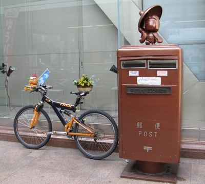 ★★★有料プランにしました。掲載画像から、【はてなダイアリィ】に飛べます。楽天ブログではパソ動画を貼れないため、リンクしました。管理人が投稿した、ニコ2動画も見ることができます。★★★----------------------------------------------平安建都1200年を記念して建てられたポストの上にはマスコットの【京のぞみ】像が『あずき色』に輝いていました。管理人の愛車、【TREK-Y5】を並べて記念撮影しました。【京のぞみ】像のズームアップ画像です。by Tweet Button