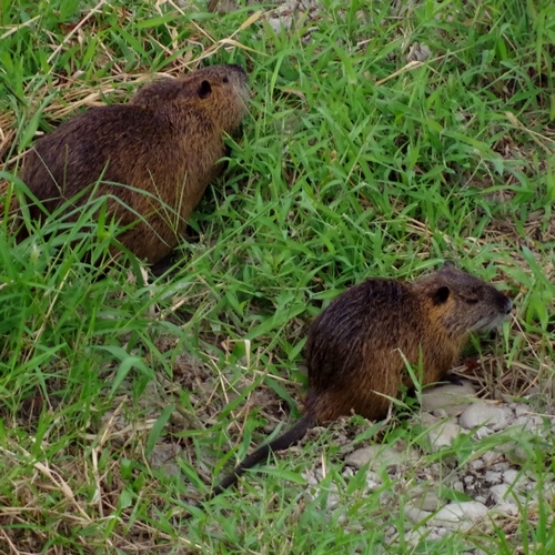 渡月橋の真ん中辺りで人だかりがあるのを見て、管理人は急いで様子を見に行ったのでした。橋の下にある、中洲に『ヌートリア』の夫婦?がいました。その夫婦は草を齧っているところでした。管理人は300mmのズームレンズしか持ってなかったのでこの画像が限界です。嵐山でヌートリアを見たのは初めてでした。-----------------------------------------ブログ・ランキングのバナーです。クリックして頂ければ幸いです。-------------------------TWITTER/ツイッターもやっています(*^^)v。--------------------------------------------------
