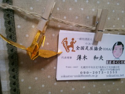 昨日は、埼玉県議の福永信之氏と再会、旧交を、暖めました。 後にデイケァサービス愛の社長の所に行き足圧ほぐし流で施術。 身体をなかなかほぐれていかないと、試しに受けて頂きました。1時間施術して、まるで大きな手?こんなにほぐれた事はないと歓んで頂きました。社員の方が小学生の時、カイロと称されるものに頚をゴキゴキしてもらいそれ以来35年間首が痛いと。 足、背中10分脛椎を、20分嘘のように痛みがなくなり動くように成りました。お礼に埼玉から世田谷のホテルまで車で送って頂きました。 今後どこにいても、必ず帰りは送りますので、また是非、来て下さいと。 埼玉の皆さん足に職をつけませんか?