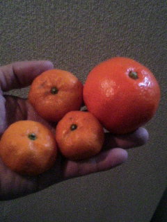 お客様より桜島小ミカンをいただきました。(ありがとうございまーす)右のミカンは通常のミカンです。食べてみました。美味い!後は、トッピ-なる乗り物があるそうな乗ってみたい・・・・。~注~先日、オオカミの写真の載せたところ誤解をされた方々がいらっしゃったようなので・・・・私は動物占いは黒ヒョウです。