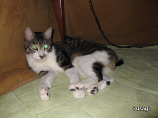 緑の目をしたじゃないですよ。コタツの中にいる時に撮ったら目が光っちゃいました。猫はコタツで丸くなる〜 なぁ〜んて歌がありますが、暖かいと丸くならないので、コタツの中ではこんな感じだったり、伸びて寝てたりします。 寛ぎのポーズとでも言いましょうか しかも、コイツってば、贅沢なんですよ私はコタツの中が暖まると電源をOFFにするのですが、先ず、コタツに入りたい時は、私の傍に来てコタツを開けてくれと、催促します。そして電気が入っていないと、中に入ろうとせず、電源をONにしろと催促します。ヒーターが赤くなるとコタツの中に入ります… 暖まると私はOFFにする訳ですが、寒くなってくると、私の足をかじり、ONにしろと催促。痛い、いた〜い 思いっきり暑くしてやりましたコタツから出て来て、頭を振り、大きく伸びをして、窓辺で景色を見つつ、体を冷やし…何事もなかったかのように、またコタツへ。 でも、お客さんが来る時や食事の時間が近くなると、ゲージに入れられます。テーブルにお皿が乗るので、そろそろ退去命令を… 自分でゲージに入ってくれたらなぁ〜