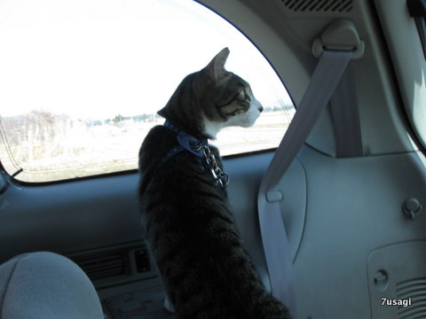 昨日のお天気が嘘のように、今日は良いお天気ですHappy Day に はっぴぃくんを連れて、近くへドライブ&お散歩へ行って来ました。 行く時はこんな感じで窓の外を見ています。横の景色と後ろの景色を見れる場所を陣取っています。とっても欲張りです。 まだまだ風が冷たいのが分かっているので、外を歩く気は、さらさらなさそうでしたが…こっちだって、歩かせる気は全くないですよぉ〜帰ってすぐにシャンプーするのは面倒です。ずっと旦那くんの腕の中でした。 この近くに小さな滝があるのですが、まだまだ雪が多くて大変。そこまで歩くのはもう少し暖かくなってからかな。 こちらは帰りです… 2列目シート真ん中で 新鮮な空気をいっぱい吸えて、幸せ気分です。