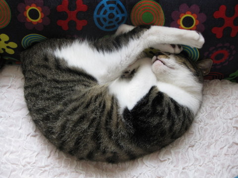 ただ今の室温は 25.2℃ここのところ、ずっと状態のお天気…今日は1日中みたいです。 ちょっと、冷んや〜りするんですよ。 はっぴーくんも、心無しか丸くなってます肉球は1ヶ所だけ白いんです。見ていると触りたくなっちゃいますね 続きで窓を開けられない日も多く、はっぴーくんは元気が窓の外を見ては、寂し気に私の顔を見る。私の顔を見ては、寂し気にまた外を見る。 この何とかしてくれよと、言われている気がして来ます。