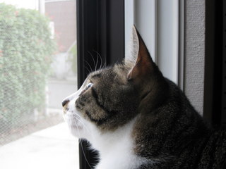今週はずっとパッとしないイマイチなお天気。でも、だからといってずっと居るのも… ね。 そこで、出掛ける支度を始めると、はっぴーくんは監視を始めます、後ろをついて来ます。 準備が終わり、前に座るとキーボードの上を歩いて邪魔をします。しかも、窓の外を見ては、私の顔をチラ見。外へ出たいと催促しているかのようです。 出掛けるのか 出掛けないのか 置いて行かれたくない… でも眠い… そんな時は、ここにいるのが安心・安全なんだニャァ〜っすかさずはっぴーくん、玄関へ出る扉の前を占領。まだまだ寝ないぞぉ〜っ。 手前に引いて開ける扉なのでここなら寝ても大丈夫なんだニャン