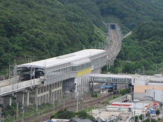今月中旬のこと…降り続いているので、青空を探す旅に出た日記旦那くんは4連休 覚えてますか。その時に立ち寄った道の駅の一角にある石神の丘美術館から町を見下ろすと、いわて沼宮内(ぬまくない)駅が見えます。この駅、初めての人には『うまくない』と聞こえるそうですが ちょっと望遠にして撮ったのがコレ。 こんな坂道・山ん中…新幹線が通ってるなんて、何となく違和感があります。盛岡から北へは車でしか行ったことがなかったので、こんな風に走っているのを知りませんでした。 旅もいいけれど交通手段を変えると色んな発見があるんでしょうね。 急ぐ旅・ゆっくりする旅…それぞれに思い想いの旅を楽しむ。日常を離れ、非日常を味わうことも時には必要です。 東北を応援しよう… 岩手を応援しよう… 何度か紹介されています。中村家の海宝漬ちょっぴりリッチな気分で自分なりの海宝丼を作ってみませんか。