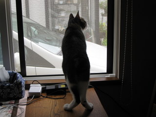 旦那くんの調子がイマイチなのと、リビングで見ながらしたい… のも重なって、週末は私の旦那くんに占領されていましたってな訳で、週末はブログをお休みしていたのでした。 今日は独り占め… って思うと、なぜか、そこまで使いたい気分じゃないんですよ無いもの強請りですね。いつでも使えると思う気持ちだけで十分だったりします。 と、いいつつこうしてブログ更新しちゃってる訳ですけど 今日のはっぴーくんは、といいますと、私の横で外を眺めています。 私… この揃えてある後ろ足が好きなんです。