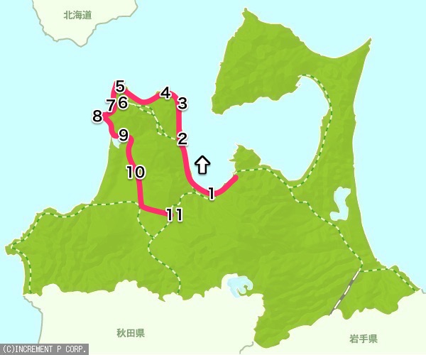 9月1日(火) はっぴぃは寄り添ってぐっすりんこ まずは 1. 青森市内旦那くんの両親のお墓参りとお寺さんに行きました。はっぴぃは何度目かな。 位置的に正確ではないですが、 なんとなくイメージしていただけたらと思います。 2. トップマスト (蟹田 むつ湾フェリー埠頭)ここから脇野沢港までフェリーを利用して、観光をする車も多いです。 高い所が好きな方はどうぞ、足場の下が丸見えです。 北海道からだと大間から入るのもアリですね。 3. 平舘灯台江戸時代に松前藩の大名行列をなして江戸へ向かった松並木や、外国船の侵入を守った平舘台場跡があります。 ベンチでゆっくりしたいと思える場所でもあります。(観光ではなく、はっぴぃタイム) 4. 高野崎(津軽国定公園) 奇岩、怪岩がいたるところに突きだしている、迫力のある景勝地です。晴れた日には竜飛岬、下北半島、遠くは北海道の眺望が素晴らしいロケーションです。車を降りて灯台を見ると、一見、灯台しかないようにも見えますが、 灯台を目指して歩いて欲しいです。 先ずは灯台を正面にし、左階段下からの眺めを楽しみ、 灯台まで行って右下は、こんな感じ。ここは、私たちも初めての場所で、感動も大きかったです。高野崎灯台から岩場を結ぶ赤い橋 潮騒橋 と 渚橋 予定していなかった袰月海岸にも立ち寄ってみました。 5. 日本有数の強風地帯 龍飛岬 へ。 最初に 津軽海峡冬景色 を聴き、 階段国道の近くにある、お食事処たっぴでお昼でした。座席の前に停めれてラッキー、はっぴぃと目が合います。ほたてラーメンとイカ焼き定食です。大きなほたてが3個も入っていて食べ応えありでした。 6. 眺望台 と 7. 七ツ滝海の美しさ、地形の美しさを一度に感じられる場所です。最高のロケーション、バイクで来られる方も多いです。 8. 小泊岬 権現崎とも呼ばれています。断崖絶壁がつづき、羅漢石、姥石、弁天崎、稲荷堂、七つ石、青岩など「小泊十二景」が見られます。 9. 道の駅十三湖高原 にて、はっぴぃご飯。泊まり客はこの橋を渡り、日帰り客は歩いて渡ります。平日の夕方なので、閑散としてました。近くのお店に、十三湖のしじみラーメンを食べに来る方も多いです。 10. 桜の季節に賑わう 芦野公園ここははっぴぃの大好きな場所です。私が引っ張られて歩く、走る、いい運動でした。 近くには、何度か行っている太宰治記念館 斜陽館 や 五所川原の 立佞武多の館などがあります。(斜陽館はゆっくり見たい場所の1つかも) 五所川原市内で夕飯を食べて 11. 道の駅なみおか にて おやすみなさい同伴なので、ここにしましたが、今の時期なら、おすすめは道の駅いなかだて稲刈りのシーズンまで 田んぼアート が見られるはず。 … つづく … 応援いつもありがとうございます。