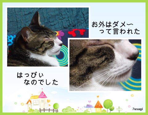 有休消化していた旦那くんですが、結局は別枠に2日残し、 あとは明日の午後・半日とって終了です。 とはいえ、明後日で9月も終わりなので新しく有休が…お休みは計画的に・・・と、思いつつ、毎年、そうは行かず、なのです 今日は庭の枝葉の剪定作業を…実は後ろはフェンス越しに低くなっているので、フェンスから外に伸びた、枝切り作業に時間がかかるんです。苦情につながらないよう、なるべく下に枝葉を落とさないように…しなくては、なのです。 後ろに建物がなくて見晴らしはいいけれど、その分、苦労というオマケ付き、けどまぁ、岩手山を望めるので良しとしましょ さて、今日のはっぴぃは…お外に出たいと訴え続けましたが、願いは叶わず、私の横で、ふて寝といった感じでした。ちょっと体を撫でると、チラ見してお尻を向ける、そして、冷たい視線を送り、ソファーに移動。 残念ながら、明日もお留守番… かも ね。 にほんブログ村 応援いつもありがとうございます。
